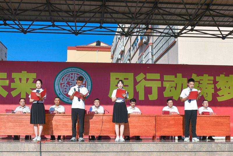 教师代表隋晓璇发言,表示新的学年,圣都教师将用心血和汗水共同托举起圣都学子灿烂的明天。