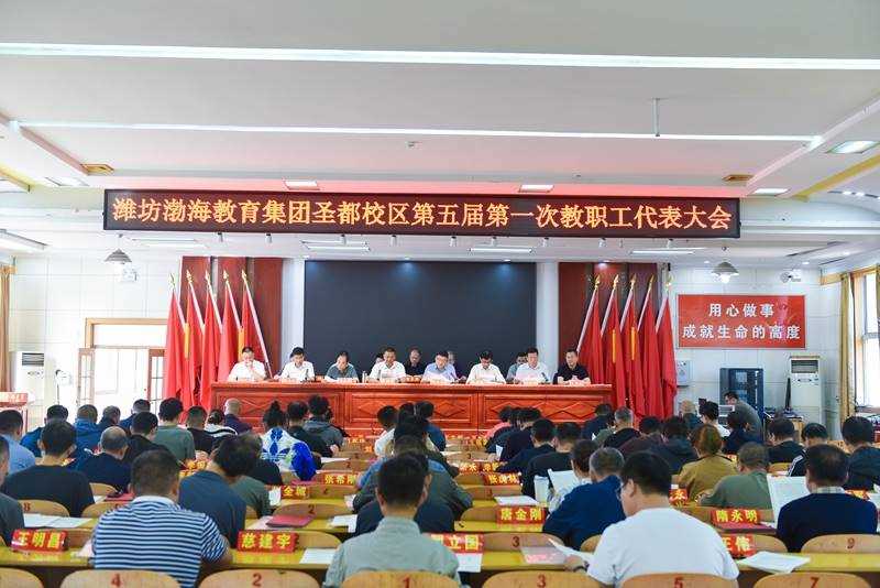 9月23日上午9时30分,潍坊渤海教育集团圣都校区第五届第一次教职工代表大会在学术报告厅东厅开幕。学校党委书记何祥坤以《强化担当,真抓实干,开创高质量发展新局面》为题作学校工作报告,党委成员分别做相关报告、解读相关决定和方案,76名代表出席会议。