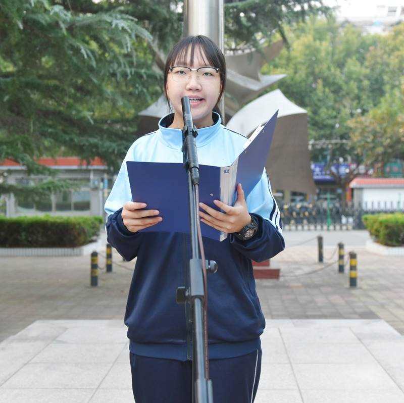 伴着庄严的国歌,鲜艳的五星红旗冉冉升起,全体师生肃立、向国旗行注目礼。