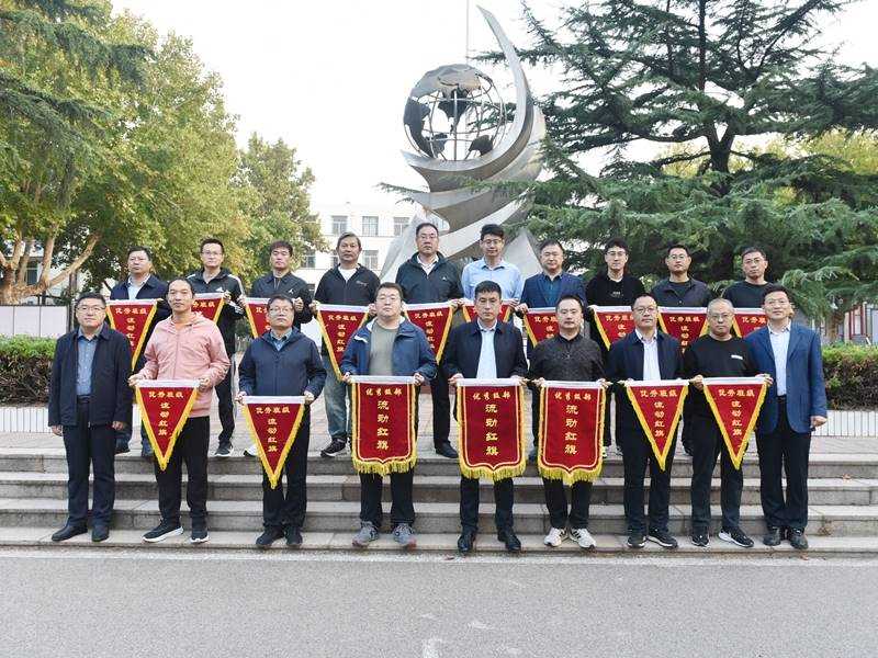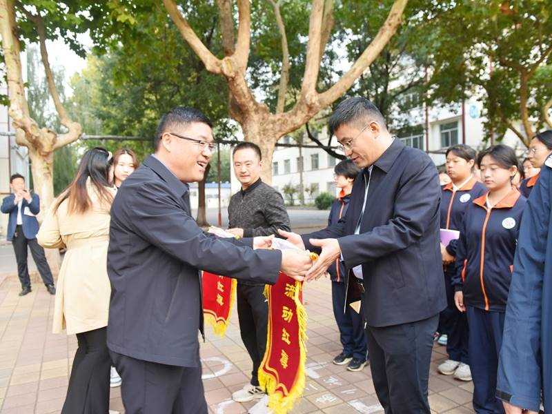 获奖名单宣布后,锡洪武为朱晓鹏、陈石蕾、郭梁三位级部主任颁发“优秀级部”流动红旗,为郭光晟、孙玉果、王志强、郎旭军等14位班主任颁发“优秀班级”流动红旗。