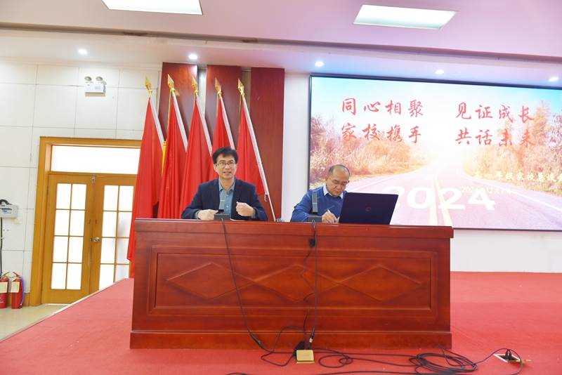 为搭建家校共育平台,挖掘家校合作潜力,12月7日上午,潍坊渤海教育集团圣都职业高中高一年级“同心相聚 家校携手”家长会在学术报告厅东厅召开,副校长张海涛主持会议,级部主任石磊发言。