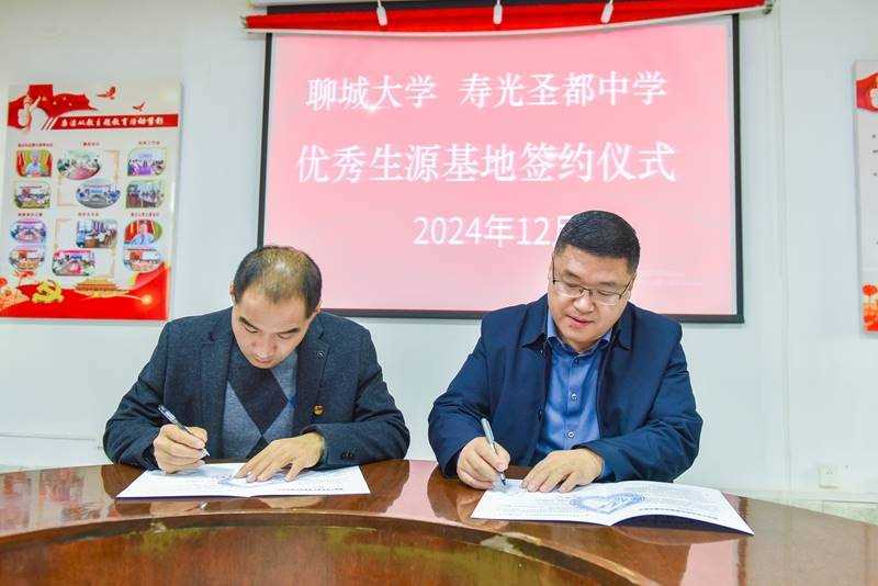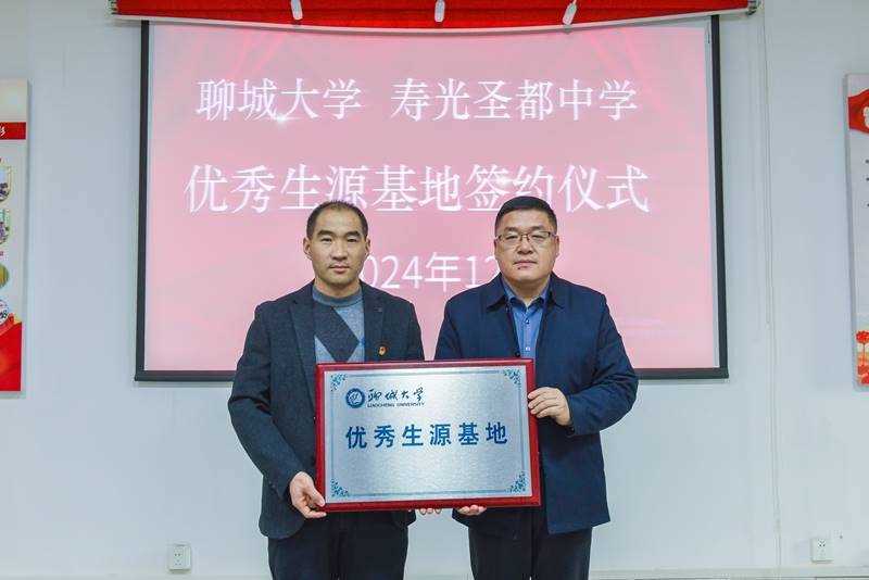 会上,李晓鹏与锡洪武共同签订《优质生源基地签约协议书》,锡洪武代表学校接受“聊城大学优质生源基地”牌匾。