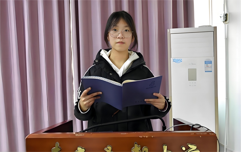 经典名著。张博宸同学以《红楼梦》中的诗词意象为切入点,分享了自己对曹雪芹“草蛇灰线”叙事艺术的理解;董铭晗、董晓妍、靖雅琪、尉腾曰四位同学则聚焦贾府女性群像,通过人物演绎对比呈现了当时社会女性的不同生存境遇。林子睿同学带领大家感受了沈从文《边城》中纯真人性与自然美学的细腻交融。